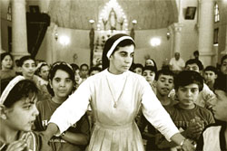 Mosul still bears the unmistakable scars of 1991. We visit sites blasted by the US "smart" bombs a dozen years back - the telephone company smashed to smithereens, a Christian church where the roof literally blew in, killing four worshipers at prayer, we are told by the young house priest. Mosul is the site of some of Christiandom's earliest crusades, a multicultural oasis where 8,000 orthodox Catholic families still reside. We bus down the valley to a fourth-century monastery hewn from the surrounding mountains - the ruins of a church built in 150 AD are said to be nearby, such relics being in spitting distance of Jesus Christ himself, as an erudite fellow Shield observes.