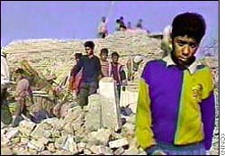| Children amid ruins of their Basra neighborhood after US missile attack. Credit: CNN |