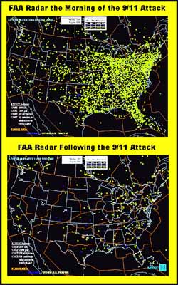 | Were some of the "blips" on the FAA's radar screens artifacts created by government hijacking scenarios scheduled on September 11? Credit: FAA |