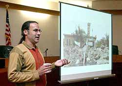 | Citizen Journalist Dahr Jamail presents photos of US military's destruction in Iraq. |