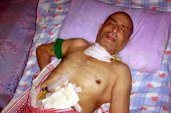 Sadiq Zoman was detained by US troops and, after a month in custody, was delivered to a local hospital in a comaatose state. His body bore signs of torture. Credit: Photograph by staff at Salahadeen Hospital, Tikrit.