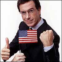 COLBERT (interrupting): Ah, no, he's the former CBS anchor. Katie Couric is the new anchor of the CBS Evening News. Well, well, how do you guys feel about that? You, tousle-haired guy in the back. Are you happy about Katie Couric taking over the CBS Evening News?