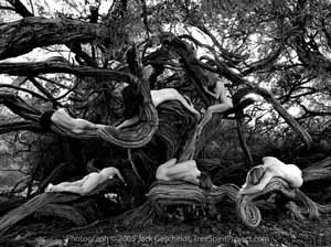 (September 2005) -- Most photos that include nudes are about nudes -- everything else is just an accessory. In Jack Gescheidt's TreeSpirit photos, the nudes are the accessories. In some you may not even notice the nudes at first. And in all of them you could subtract the nudes and still have a beautiful photograph. His photographs inspired me because of the spiritual messages contained in them.