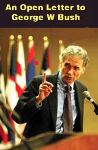 On August 14, 2006, following the devastating attacks on the cities and citizens of Lebanon, America's best-known Lebanese-American, consumer activist Ralph Nader, sent this stinging letter to George W. Bush.