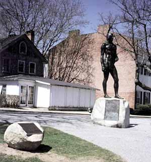 | Day of Mourning Plaque and Massasoit Statue on Cole's Hill in Plymouth, Massachusetts. Credit: United Native Americans of New England |